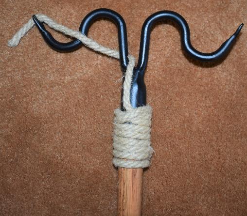| "Linstock" - oak handle and hand forged head with hemp rope. $ Call or Email for Pricing $ |