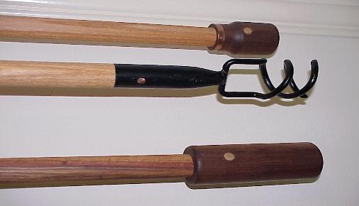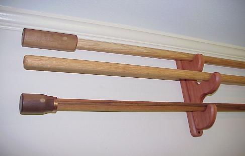 Walnut Heads - This set of Ramrod civil war implements are made to regulation size and length for a "3" inch bore cannon. A civil war reenactor would be proud to own and use these artillery implements on the battlefield or as presentation pieces. The ramrod heads are made of walnut with oak pegs and the rod staffs are made from oak. The whole set is made of solid oak and walnut woods then coated with linseed oil. - Email or Call to Custom Order & Pricing - Mount shown is optional - ask for pricing |