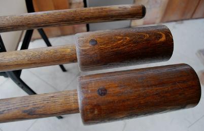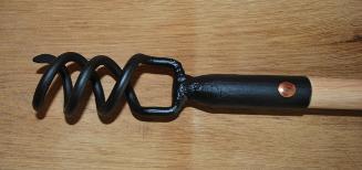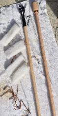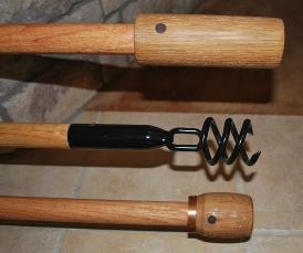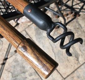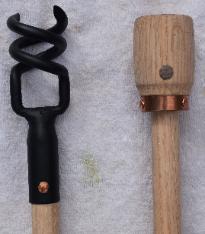 | Worm Implement 28" long made for a customer with a golf size bore barrel. Made of oak wood, copper nails and 2 size metal worm heads that clean his bore and chamber. |