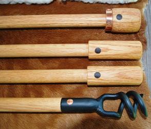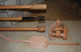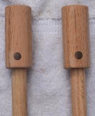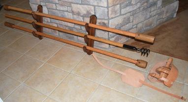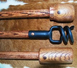 | I made all oak wood implements for a 2" bore gun. All implements are 44-1/2" long. -worm, ram rod, sponge rod with extra sponge socks, & lanyard for firing the gun with oak handle and "S" hook for a customer. |