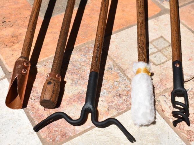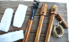 | I made all oak wood implements -worm, ram rod, sponge rod with extra sponge socks for a customer. Stained Jacobean with traditional copper trim. |