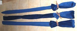 | Worm, ram & sponge rod with extra sponge socks for a customer. Made of all oak wood for a 2-1/4" bore gun. Both implements are 44-1/2" long. |