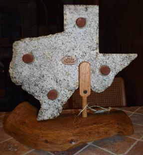 | The state of Texas is 14" wide x 1-1/2" thick. The Texas is formed to fit into the bottom stone base and can be separated very easily. |