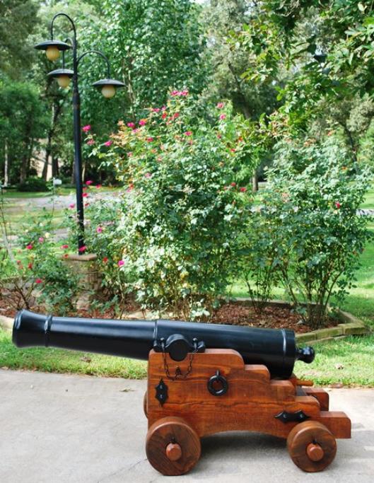 | 1841 Six Pounder - YARD ORNAMENT - Cannon and Carriage This is a "Concrete Barrel" mounted on wood Ships/Naval Carriage. $3300.00 (Cannon Barrel & Carriage) $900.00 (Cannon Barrel only) More pictures and information can be viewed on my website on this piece - |