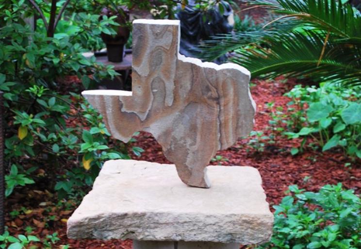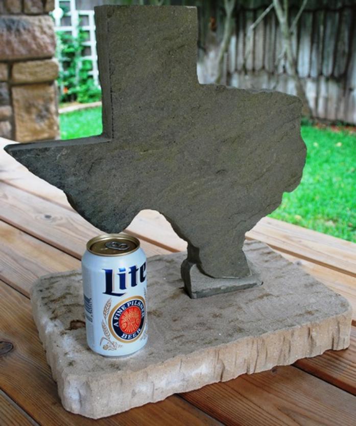 | The state of Texas is 14" x 1-1/2" thick and formed to fit into the cut out hole of the bottom base stone. Can be separated very easily. |